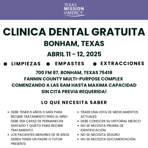 Clínica Dental Gratuita Proveerá Servicios Dentales a la Comunidad de Bonham, Texas